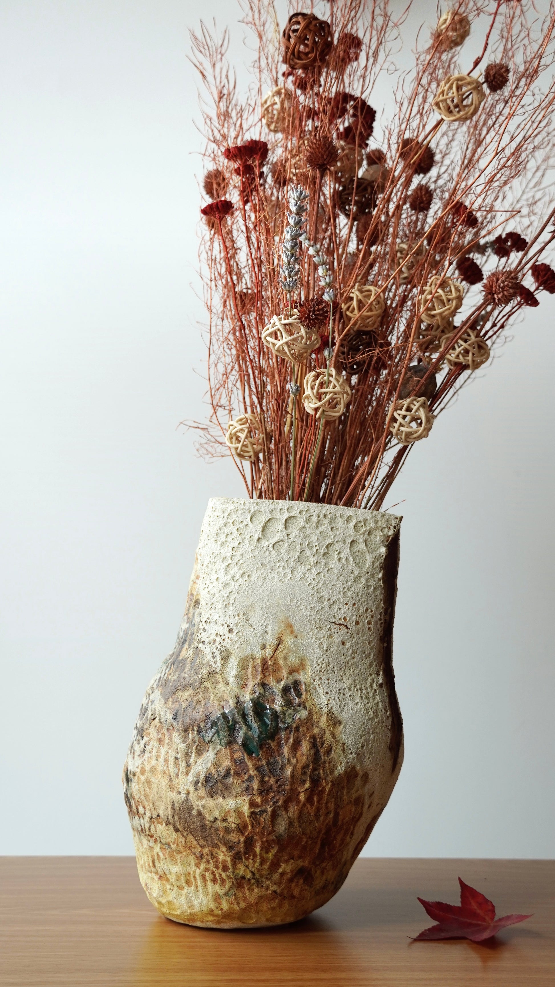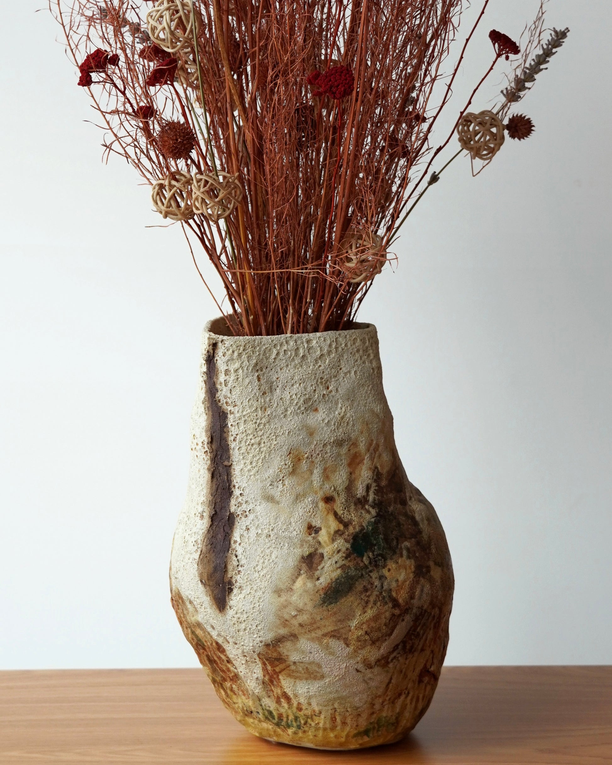 Earthy textures and organic curves meet in this sculptural vase, a quiet statement of natural beauty. A blend of raw and artful